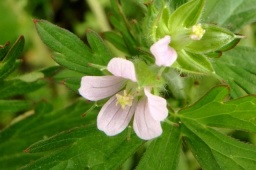 アメリカフウロ 花言葉::誰か私に気づいて下さい 淡いピンク色や白の小さくかわいらしい5弁花が数輪咲きます 薬草です 関節痛や打撲痛、または下痢止めに効くと言われています |