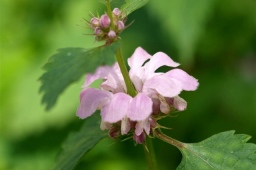 ホトケノザ 葉が仏の蓮華座に似ていることからついた名前 春早く、ピンクがかった赤色の小さく可愛い花を付ける |