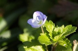 オオイヌノフグリ 日本在来種のイヌノフグリに比べて、 花も草丈も大き目なのでこの名がつけられた。 とは言え、花径は5ミリ程度のかわいい花である。 花の色は青く、紫色の筋が入っている。 花径は5ミリくらいである。 花の中央には雄しべが2本と雌しべが1本ある。 |
